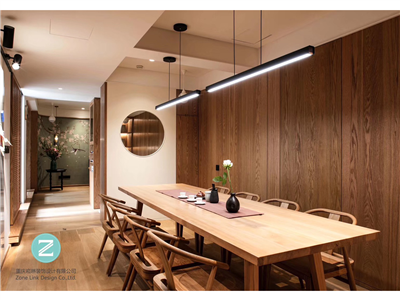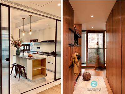 溫潤的木質調中,運用比例分割創造出線條的靈動感,中式的屏風、窗花與團圓的意象營造出溫馨與柔美的氛圍。