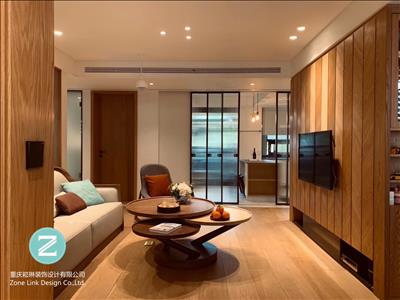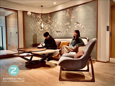 溫潤的木質調中,運用比例分割創造出線條的靈動感,中式的屏風、窗花與團圓的意象營造出溫馨與柔美的氛圍。