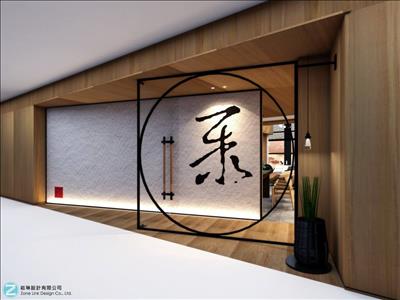 門口 以書法的“聚” 字, 代表 因情而聚,展現了中國的人的好客之道。